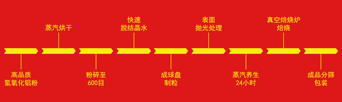 產品(活性氧化鋁)采用了自動化溫度控制設備和先進的檢測儀器,充分保證活性氧化鋁干燥劑的吸水率在55%以上,雙氧水專用活性氧化鋁的吸水率在65%以上,催化劑載體專用活性氧化鋁的吸水率在80%以上!